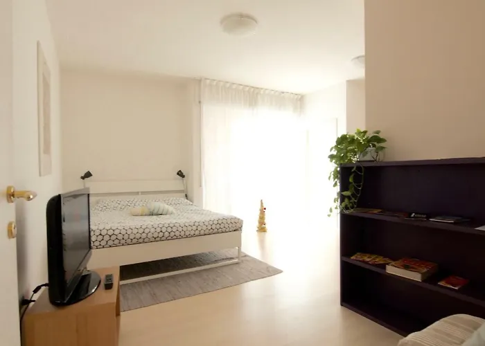 The 35 m^2 Interno 77 Di Tss' - Appartamento Soleggiato Con Ampie Finestre & Internet Veloce Con Fibra - Perfetto Per Coppie is approximately 5 minutes by car from Palazzo Thun, giving access to numerous sites in the area. Wi-Fi and parking are also available at this 1-bedroom apartment.